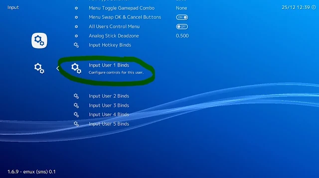 Ahora voy a configurar un Gamepad ( algo necesario para jugar a estos juegos ) para ello nos situamos en la columna de la derecha buscando la opción de Input User 1 Binds. La pulsamos y ya veremos las diferentes pulsaciones para cuadrarlos con la botonera de nuestro mando.
